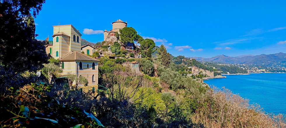 La punta del promontorio è, invece, occupata dal riadattamento di una fortezza medievale, il castello Brown, residenza privata del console britannico Yeats Brown, che ancora conserva mobili originali in maiolica. La fortezza si affaccia su terrazze panoramiche ed è spesso location prediletta per ospitare mostre ed eventi culturali. Dal castello si diparte un sentiero che conduce ad un promontorio spettacolare protetto da un faro che guarda su tutto il golfo del Tigullio. Portofino è una celebre meta vacanziera molto apprezzata dai turisti italiani e non, e per questo è anche location prediletta per l’ambientazione di molti film, come “The Wolf of Wall Street”, o di serie tv come “Hotel Portofino”, oltre ad aver ispirato anche il film d’animazione “Luca”.